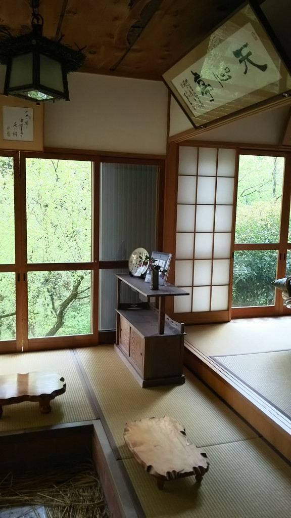 総理退任後、中曽根先生は週末になるとリフレッシュの為に山荘に出かけたり、外国で講演する前には、ここで草案を練っていました。私も先生のお供をして何度も寝泊まりした所です。夜は囲炉裏を囲んで、先生と管理人の原夫妻、そしてSPさんと一緒に酒を飲みながらいろんな話を聞かせて頂いた思い出の場所でもあります。
